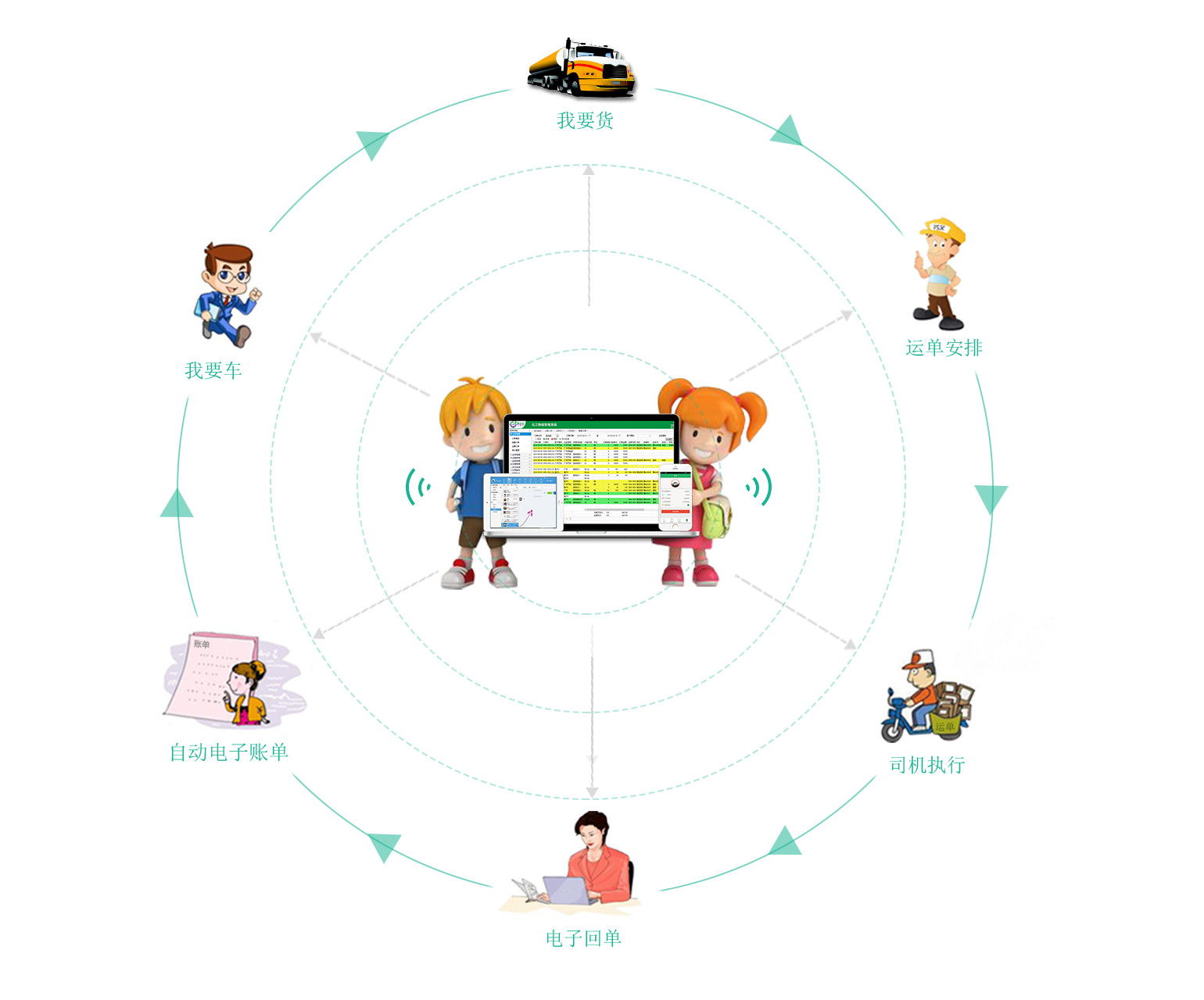 每个节点实时状态更新,真正解决了用户随时随地掌握公司运营情况,对客户需求做出快速。包括可以快速发布货源、车源信息、快速订单、运单状态跟踪等常用功能